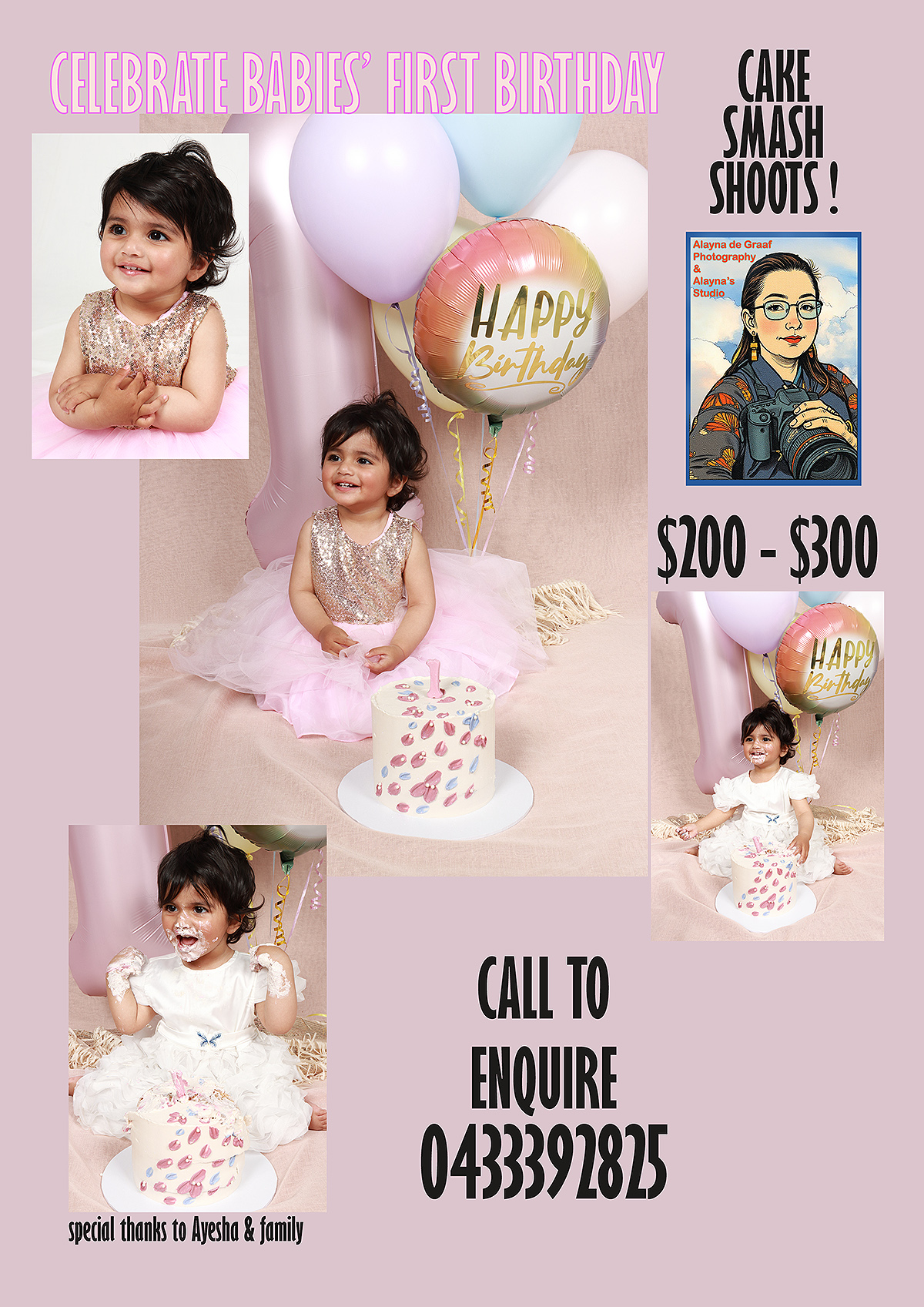 See all the details on my Cake Smash Photos page.  Celebrate your baby’s first birthday with this fun style. See the photos for examples.